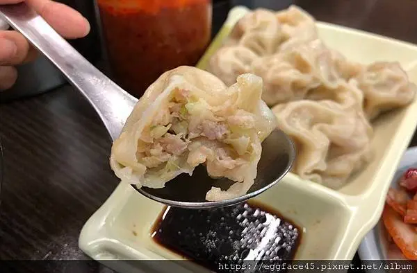 每一顆水餃都非常的飽滿,裡頭包的是高麗菜和豬肉。
