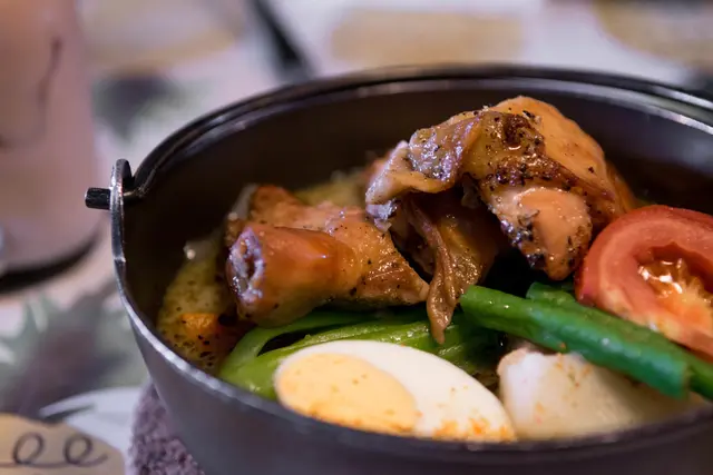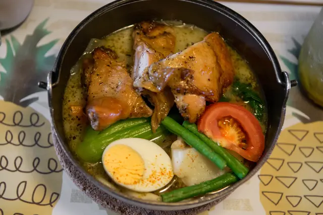配料還挺豐富的,有青菜、水煮蛋、還有整隻雞腿肉