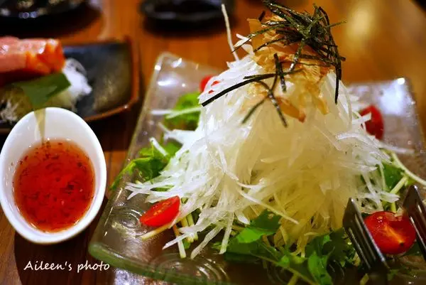 第一道送上來的是和風健康大根沙拉,醬料的部分有三種可以選擇,