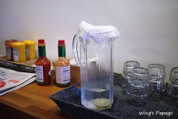 不收服務費,所以水及調味料就自取吧!