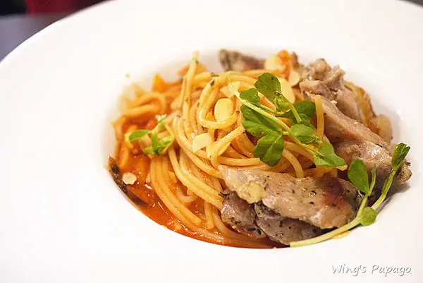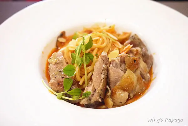 茄汁口味的義大利麵附上嫩煎雞腿塊,麵條軟硬適中,
