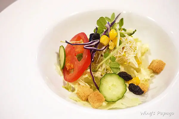 紫生菜、麵包丁、葡萄乾等,蔬菜種類豐富,嚐來鮮脆清爽。