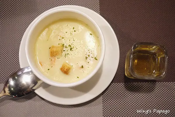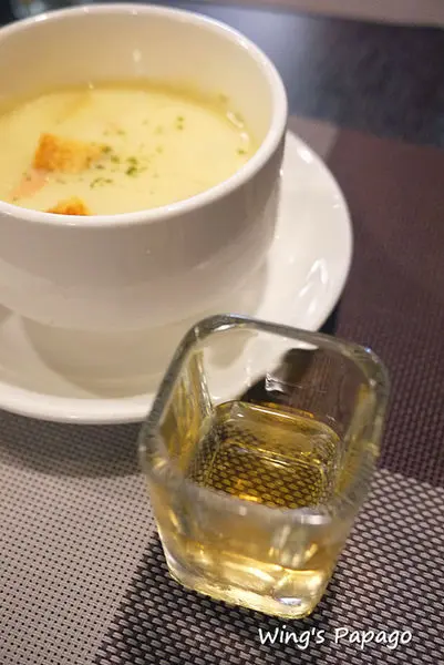 奶油蔬菜濃湯、紅茶、青梅醋,豐盛的早午餐看起來就好可口!