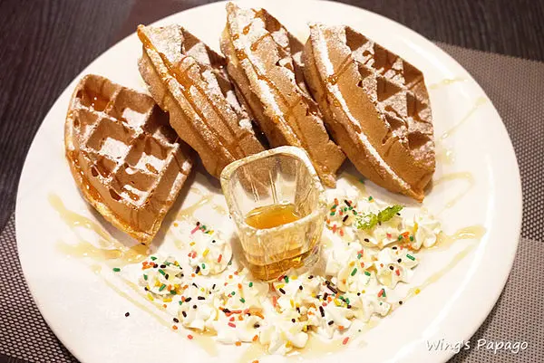 配上鮮奶油,淋上蜂蜜,外酥內鬆軟,