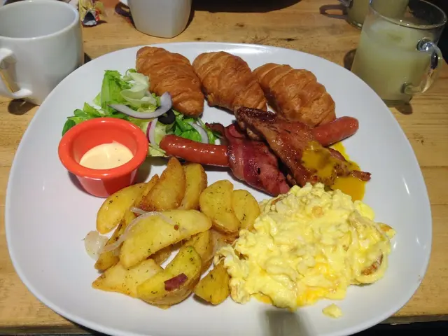 三個可頌加上德式香腸、培根