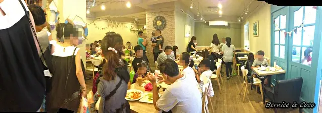 來這好像都是一群一群的父母相約來此溜小孩,桌桌都有小朋友