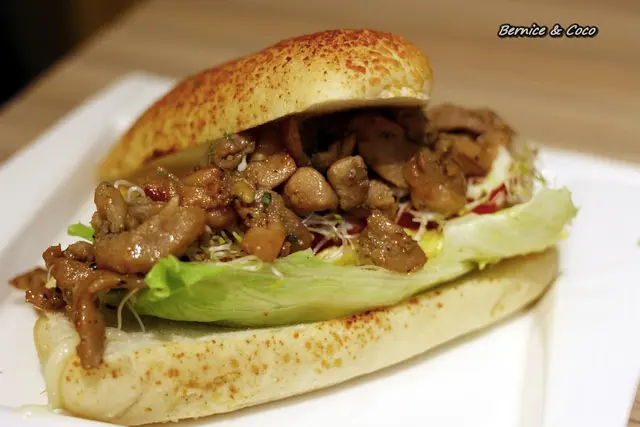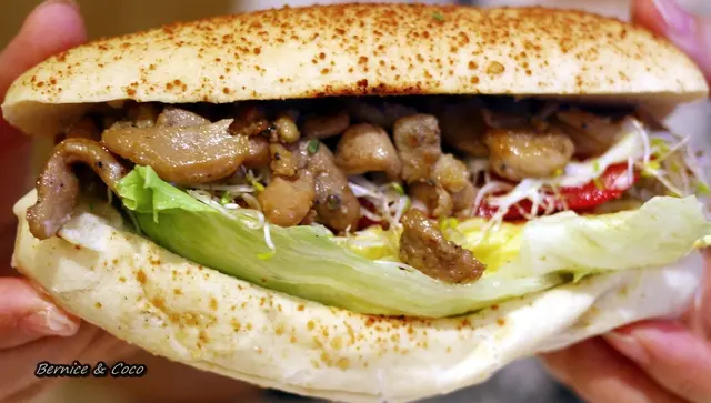 內餡的雞柳肉質滑嫩,生菜 苜蓿芽和番茄增添了清爽度