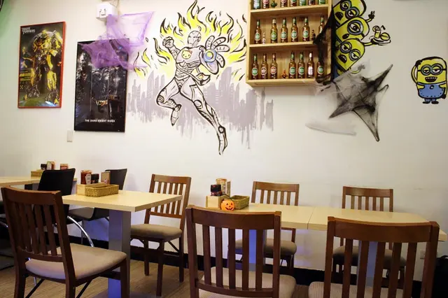 老闆應該是模型控吧!帶著暈黃的燈光空間,就像進了藏寶箱裡,藍色小精靈/馬力歐/黑武士 好多好多模型