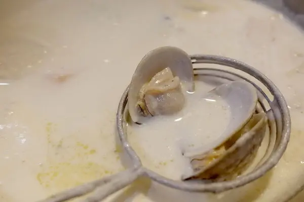 蛤蜊在牛奶鍋裡面,煮完也變得很鮮甜啊!!
