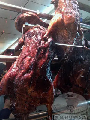 被人潮所吸引的我們,停車後走近一看,在玻璃後方,那掛了許多看起來就很美味的脆皮烤鴨、燒肉、油雞、叉燒、臘味…等。不由得讓我這肉食性動物,口水吞了幾口、飢腸轆轆了起來。另在這無論是外帶、還是內用,一律排隊點餐,我是覺得店家這種做法還蠻公平的,管你是內用還是外帶,就依據客人來的前後順序做餐,也少了不必要的紛爭。