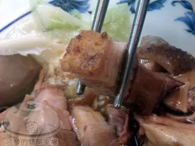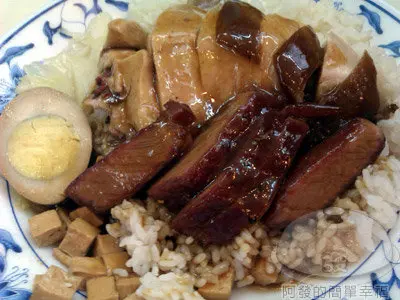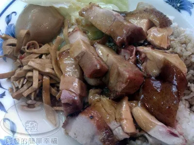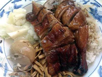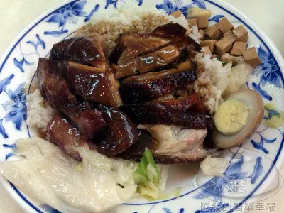 3.每種主菜都有其獨特的口感。例:烤鴨的皮脆微焦,鴨肉不會像常見烤鴨般柴澀;油雞表皮誘人的油亮光澤,肉質鮮嫩滑溜;燒肉表皮如烤乳豬般,外表酥香,咬起來喀滋喀滋的脆度。而肉,瘦中帶肥,保留軟嫩及肉汁油脂的鮮甜,店家稱為化皮燒肉,這口感讓原不愛吃燒肉的老婆,都稱讚!…..