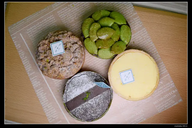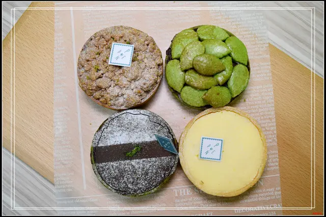 鄉村蘋果塔/抹茶白玉塔/黃澄澄檸檬塔/抹茶生巧塔(順時針.從左上開始)