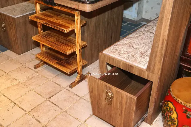 座位旁設置菜盤置物架(桌面不會食材滿滿)