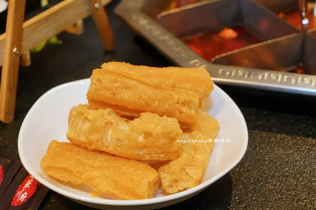 東華川府重慶老火鍋油條比較新鮮、脆中有扎實度,在麻辣湯中滾煮的時間需要1分鐘左右口感最佳