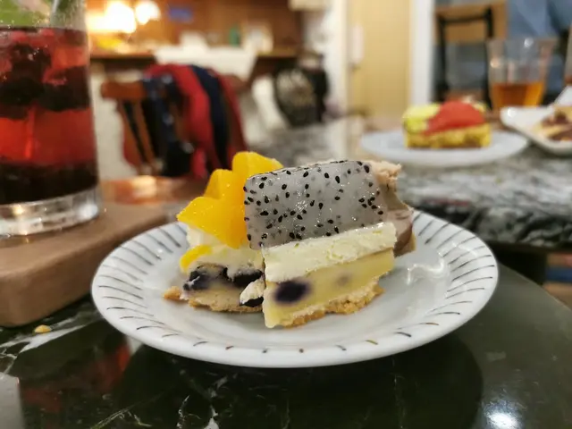 算是比較樸實風格的甜點,口感比較偏紮實,中間夾入的草莓夾層,酸酸甜甜的還可以吃得到草莓果乾