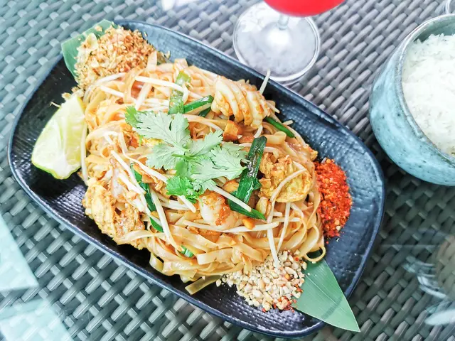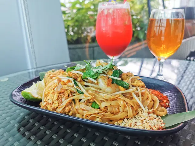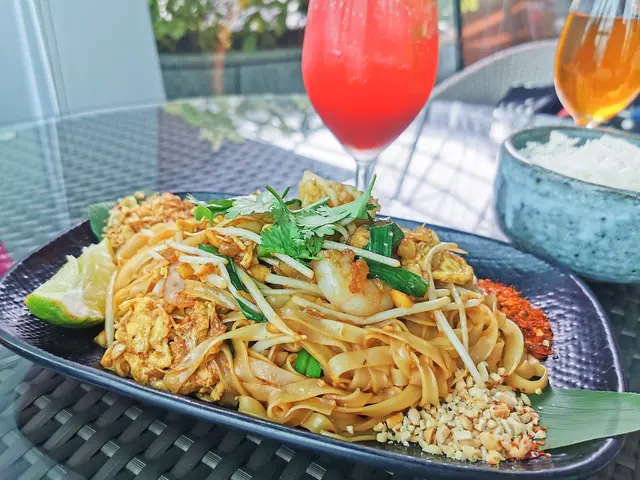 泰式炒粿條一端上桌份量感十足,比我們想像中的多很多喔