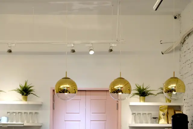 咖樂位於新埔站2號出口約步行5分鐘的距離,長方形挑高的店內空間以白灰粉為主色調,