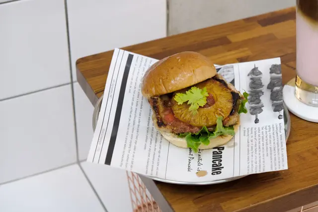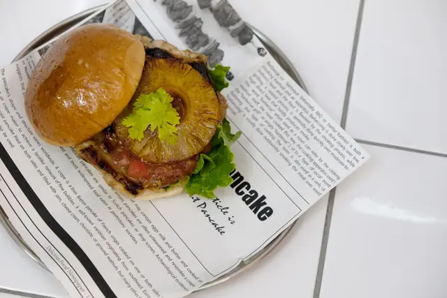 整份漢堡吃起來莎莎醬料味道濃郁,但也因此蓋過了雞腿肉排、麵包與鳳梨香氣,