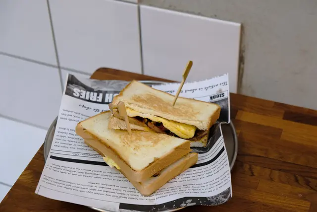 以台灣古早味菜圃夾入吐司裡,三種不同配料搭在一起,還有著小辣的口感,