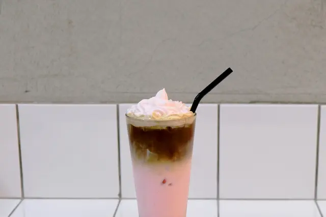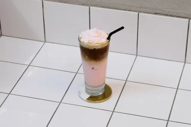 算是店內的招牌飲品,由上而下是草莓鮮奶油、濃縮咖啡與草莓牛奶,