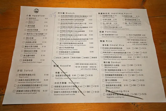 餐點分成早午餐, 帕尼尼, 飯, 烏龍麵現在似乎沒賣