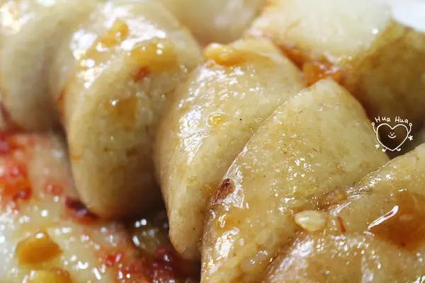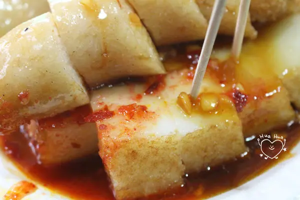 沾著鹹香的醬油跟辣椒~~糯米腸好飽口,真是無敵好吃!!