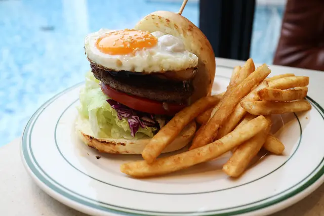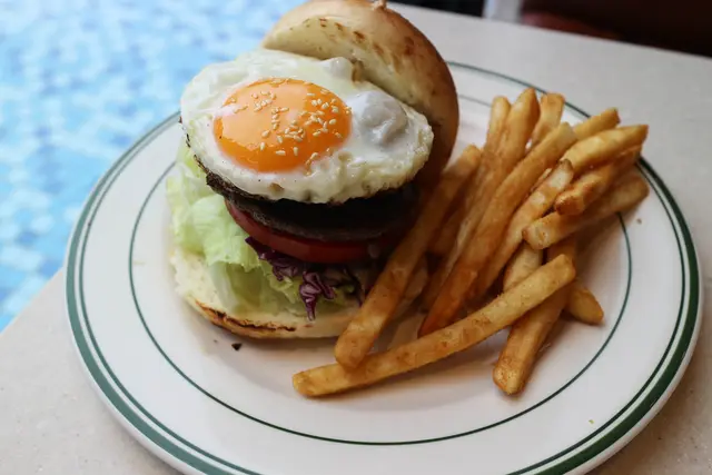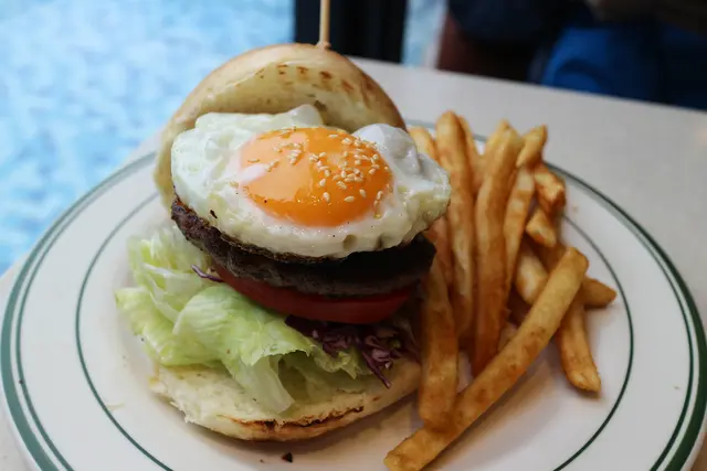生菜.蕃茄片.漢堡肉排,還有黃澄澄的太陽蛋