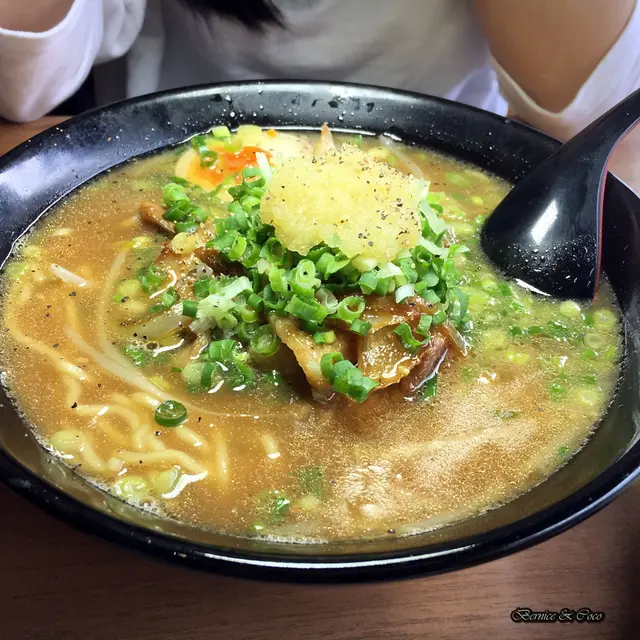 加入香氣濃郁的黑芝麻油和薑和蔬菜融合了一碗暖心又暖胃的拉麵