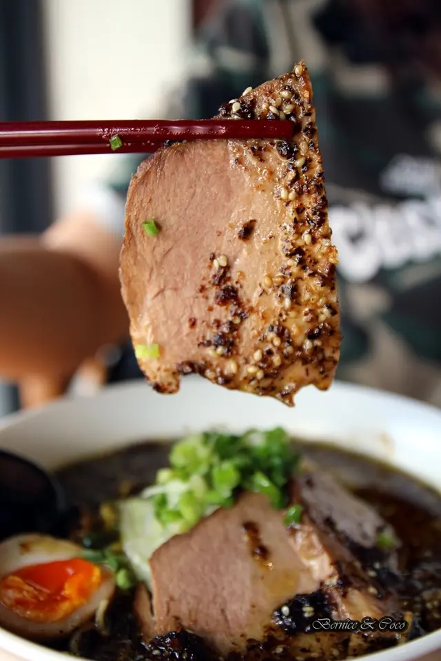 叉燒肉片選自里肌豬肉,以旭川文明的醬油滷製