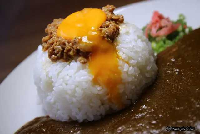 白米上頭先用肉燥鋪底再加上一顆生蛋黃,光是在賣像就讓人口水直流