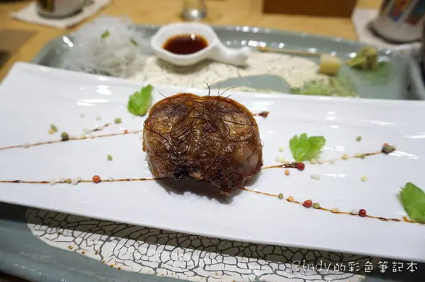 小鄭師傅強烈建議跟底下的鮭魚及醋飯一口吃 整個會小宇宙爆炸~
