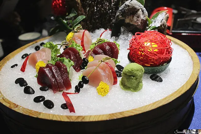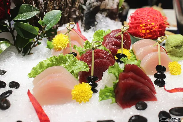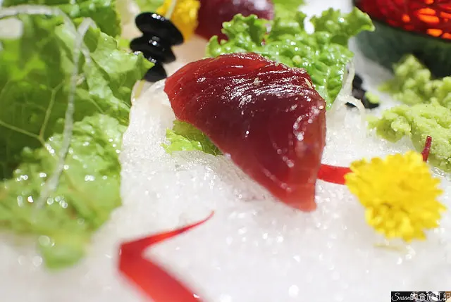 綜合生魚片選用南方黑鮪魚和東港旗魚二個色澤搭配起來超美