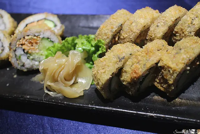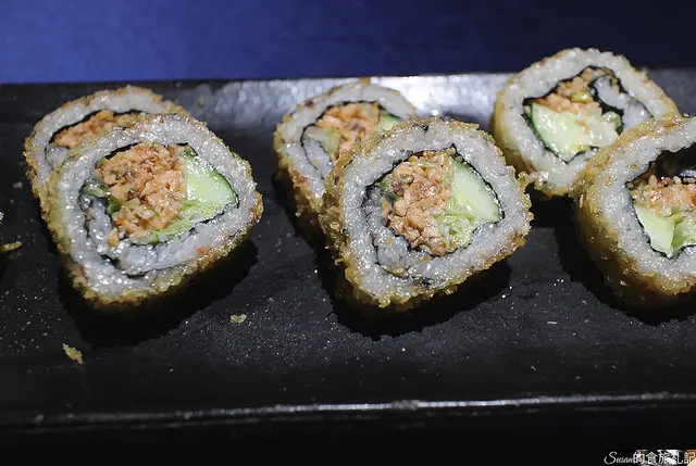 鮭魚肉、小黃瓜、海苔皮和醋飯嚐起來口感很豐富