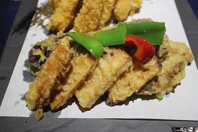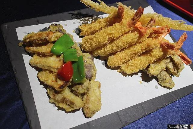 一大盤綜合天婦羅有炸蝦、栗香地瓜、茄子、青紅椒