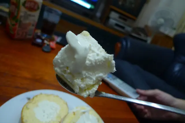 還未解凍的蛋糕捲 再中層冰淇淋還保有一定硬度的當下