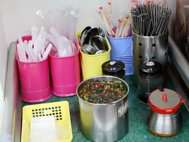 櫃檯一旁備有餐具及醬料自助區。