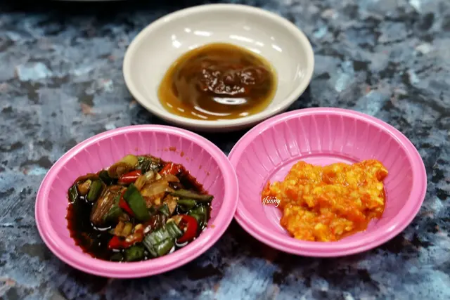 店家自製的辣椒醬油偏南部口味略帶甜,還有自炒的辣椒可以自行拿取。另有隨餐附上的豆瓣醬,三種不同的醬料,可自行搭配,其中最愛以朝天椒製成的辣椒醬,既香又辣,好吃極了!