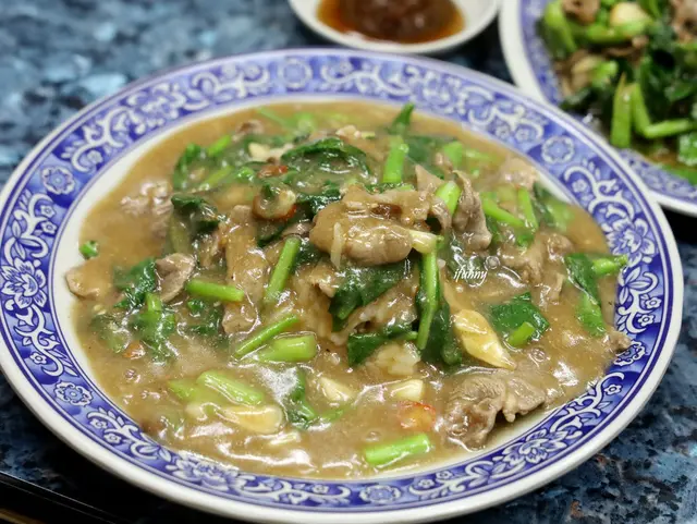 這道炒麵幾乎是每桌必點的經典菜色,更是在地評價為第一名的羊肉炒麵,而當我們親自品嚐後,覺得這可真是名不虛傳。 雖以沙茶調味,但清爽不燥口,麵條沽溜的口感、羊肉片的滑嫩加上芥蘭的脆口感,經由大火拌炒的鑊氣加持,整盤炒麵該有的香氣及口感,在口中達成完美的平衡感,令人一吃就上癮啊!