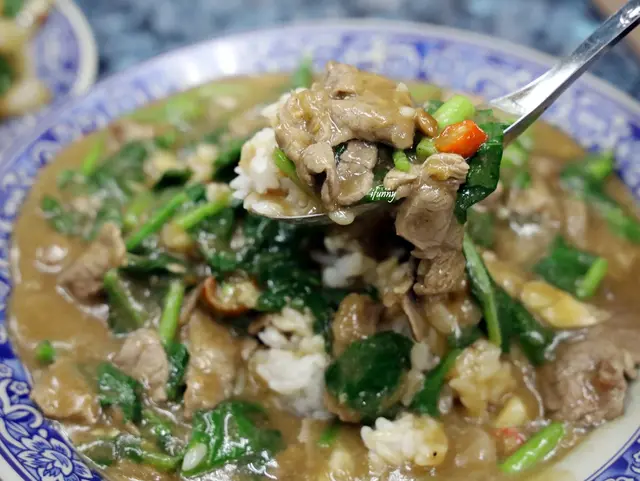 常見以空心菜炒羊肉,正宗岡山羊肉改以芥蘭菜來當配角,口感上也很契合。略帶芡汁的羊肉緊實地巴附在白飯之上,濃郁的口感令人大口扒飯地吃到一粒不剩!