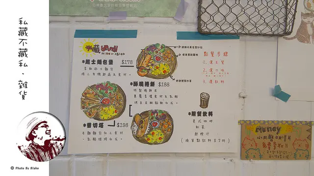 車水馬龍的景安路上,轉進巷弄,沒見到任何招牌,緩慢的脚步,發現這友人私藏的秘密基地,藍白色調的店門,呼喊著我開啟那木門,女孩兒最愛的生活雜貨,佈滿了每個角落,氧氣系的音樂,讓人放鬆,布雷克喜歡餐點內加上了水果,違和的空間內有著不違和的清爽美味。
