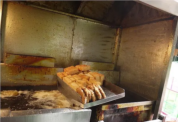 油鍋裡沒停過,不斷的炸著蘿蔔糕、芋粿Q,不只內用很多媽媽騎著車來買,外帶回家。
