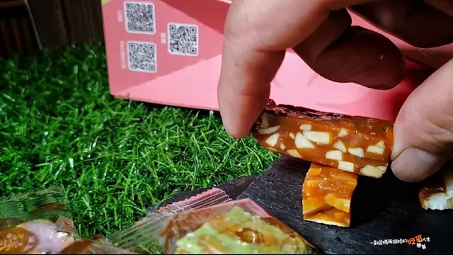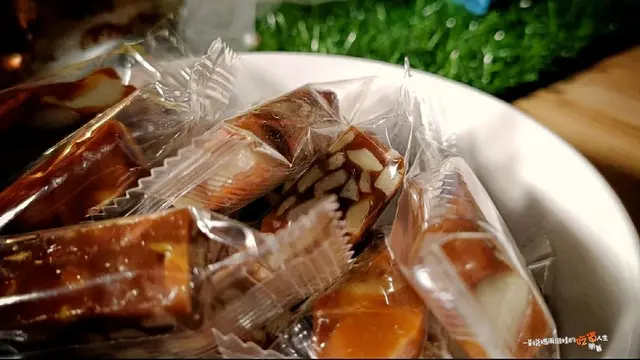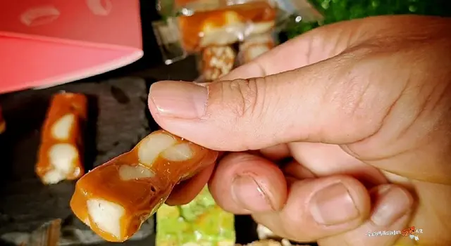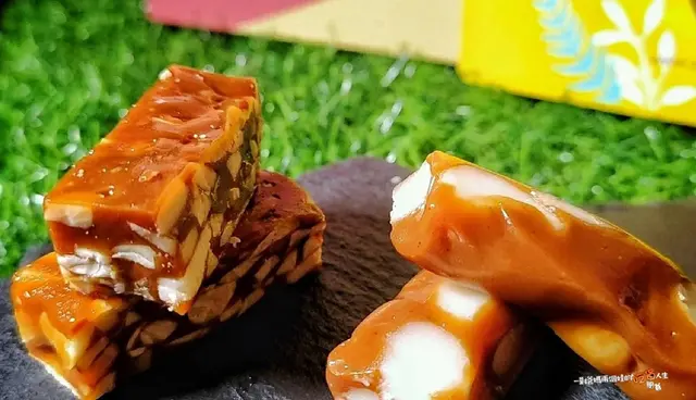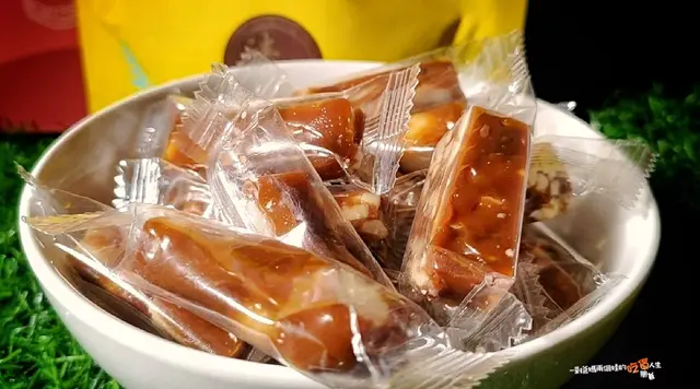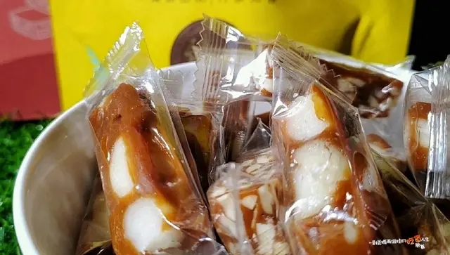 一條太妃糖有著兩種口感,吃得到杏仁條、夏威夷豆果🤗