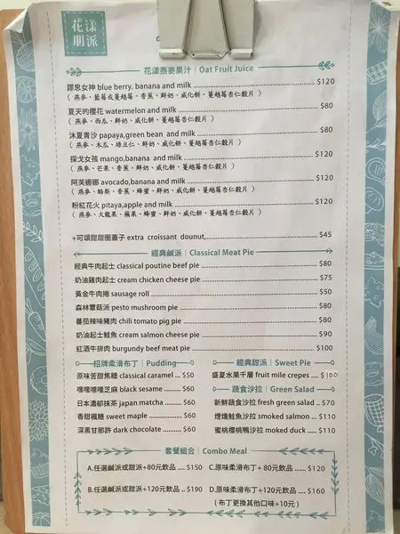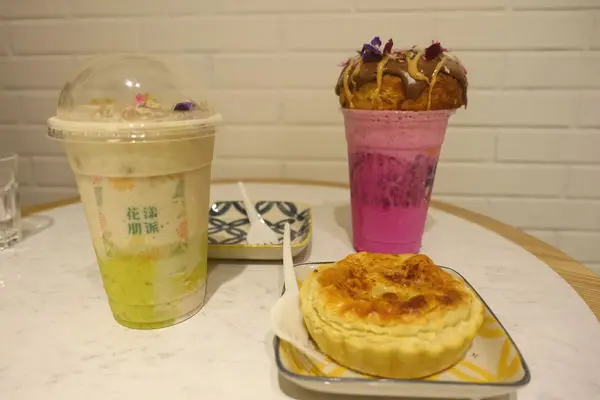 花漾朋派提供的餐點主要有燕麥果汁、鹹派、甜點和布丁;