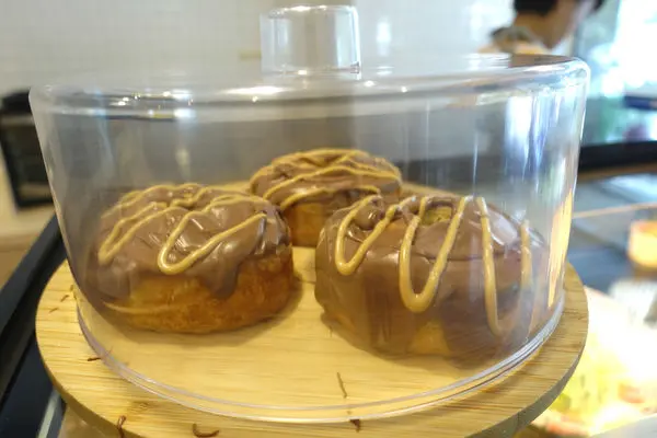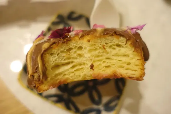 可頌甜甜圈的麵包表現也不差,本體不會很油膩,