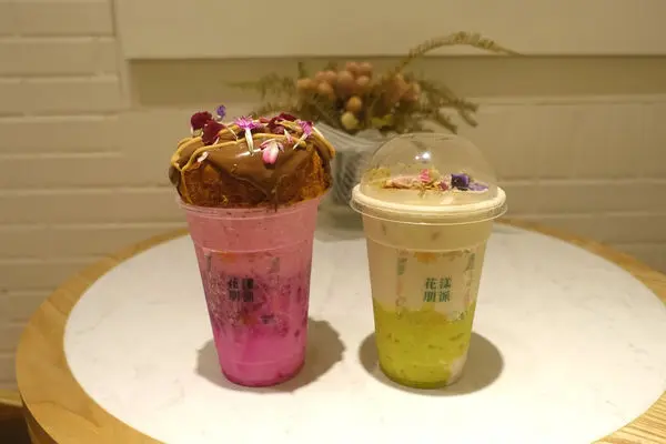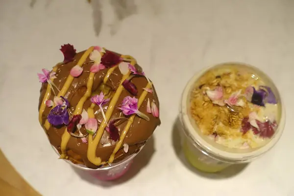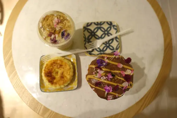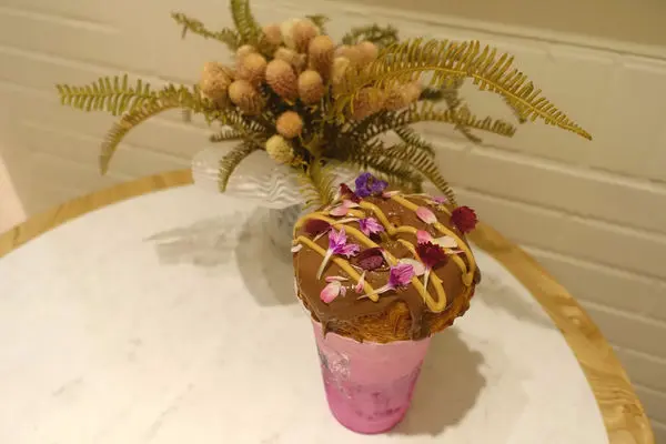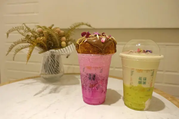 不論是甜甜圈或是現打果汁,都撒上可食用的花瓣,