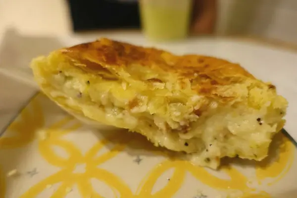 最先吃到的當然是那層層的酥皮,緊接著是濃郁但不膩口的奶醬,