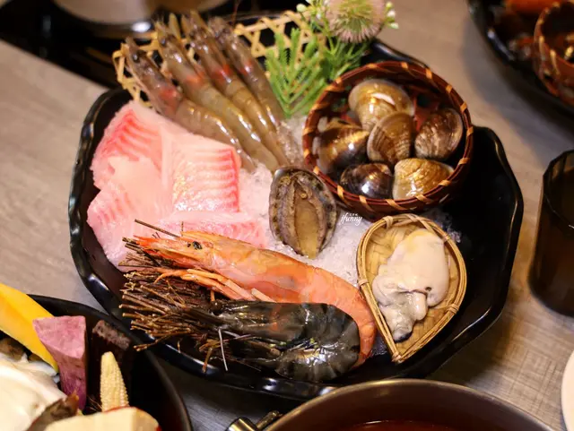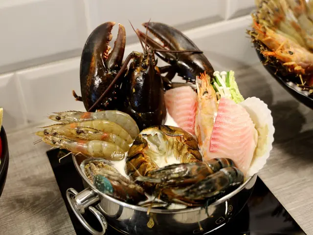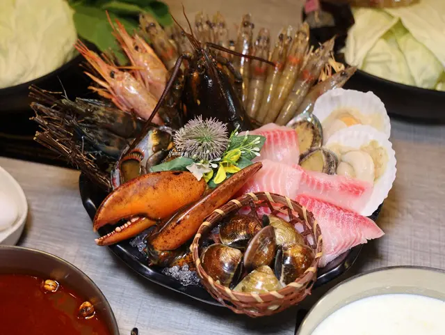 這是由野生鮑魚、廣島牡蠣、黑美人蝦、天使紅蝦、台灣黃金鯛、南美白蝦及蛤蠣所組成。每樣食材都相當新鮮,難怪會成為最受歡迎的蘆洲海鮮火鍋。