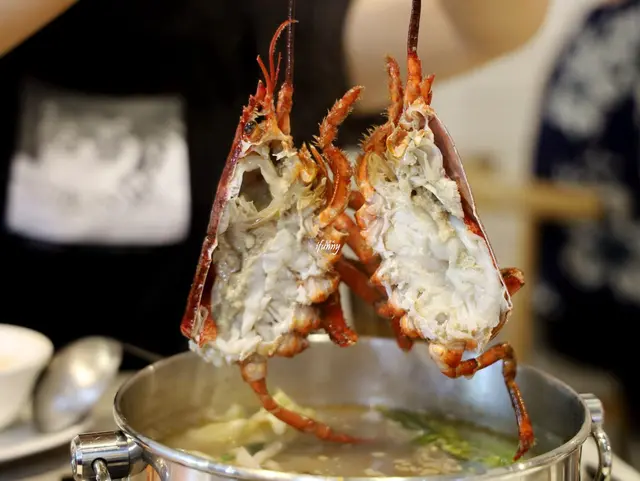 終於來到主角波士頓龍蝦,涮煮過後紅通通的蝦頭,蝦肉不多,但仍令人欲罷不能!