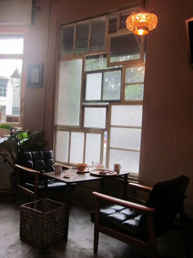 老舊木窗拼接成的一個小角落,桌椅擁有著自己的樣貌,是整家店裡最美的風景。