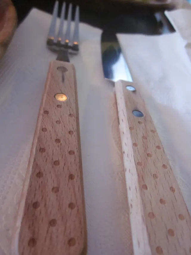 木頭質感的餐具,有一種溫暖的感覺。仔細瞧瞧,可以發現整家店的設計,木頭質感與金屬性格是並存的,色彩的元素與豐富度也很融洽。